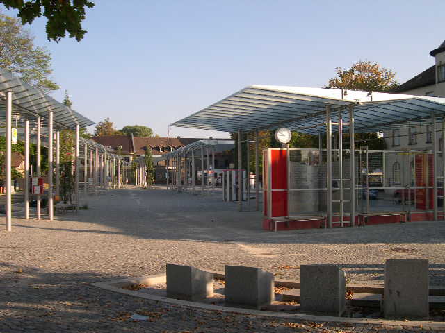 mit kunstgerechtem Zeitbrunnen, der Informationsdose und die zentral überdachte Wartezone, nun gebaut, fertig gestellt, übergeben und eingeweiht.